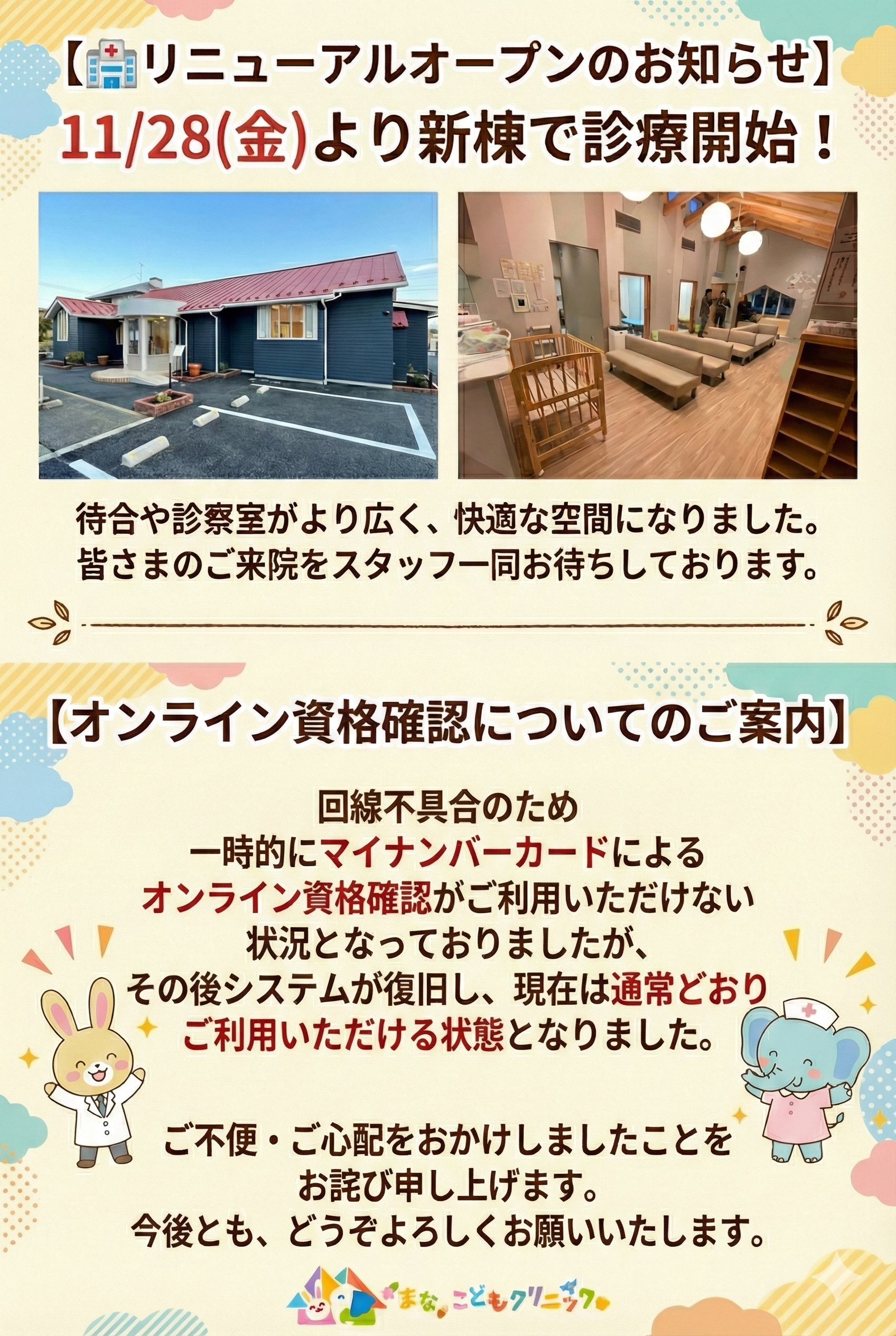 11月28日(金)より新しいクリニックにて通常診療を再開いたします!